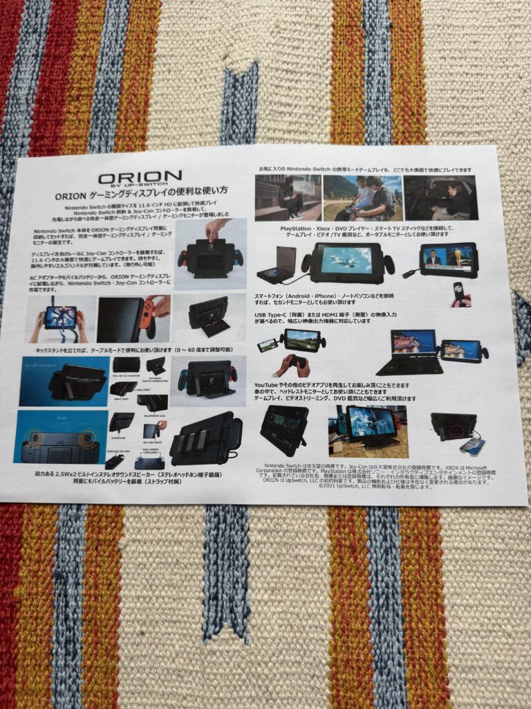 このアップ スイッチ ORION ポータブル ゲーミング モニター 11.6インチは、Nintendo Switchを11.6インチの画面で遊ぶことができ、モバイルバッテリーを使用することにより、持ち運んでも遊ぶことができるといった商品になります。