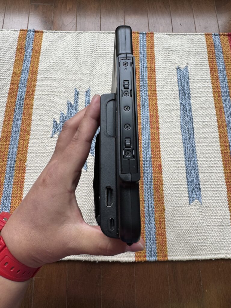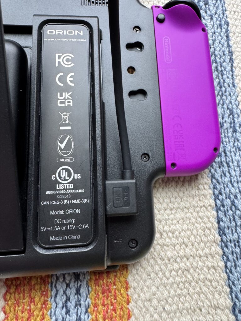 商品を取り出して見てみると、側面にJOY-CONを取り付けるスライドと、HDMI(入力)とType-C(入力)があります。