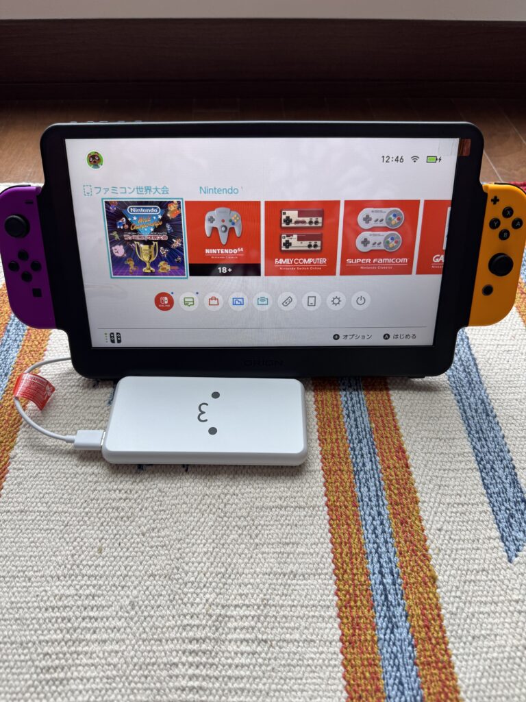 モバイルバッテリーの電源を入れて、液晶・ゲーム機の本体の電源を入れた後に、ワイヤレスコントローラーアダプターとJoy-conをリンクさせればゲーム機をコントロールすることができます。