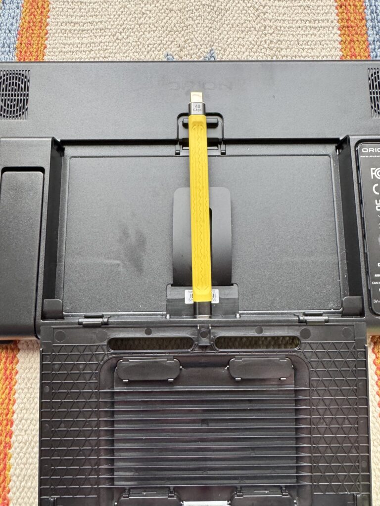 *ケーブルを抜く際は、裏蓋内側は返し?がついているので、そのままケーブルを引き込んで、電源側を引き抜きます。(電源側が穴よりだいふ大きい時は、type-A側をぐりぐりして抜くことになると思います。)